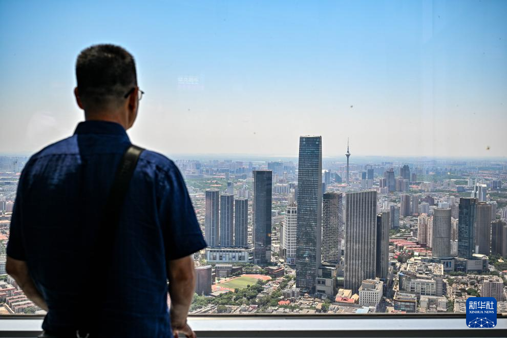 6月22日,游客在“天津之心”津塔观光厅俯瞰天津城市风光。