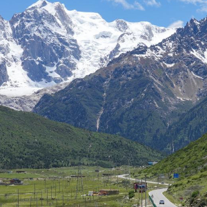 这是6月21日拍摄的雀儿山主峰(左)和国道317线。