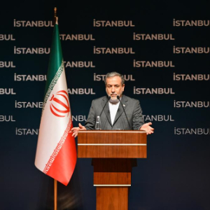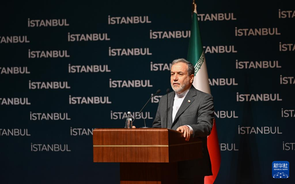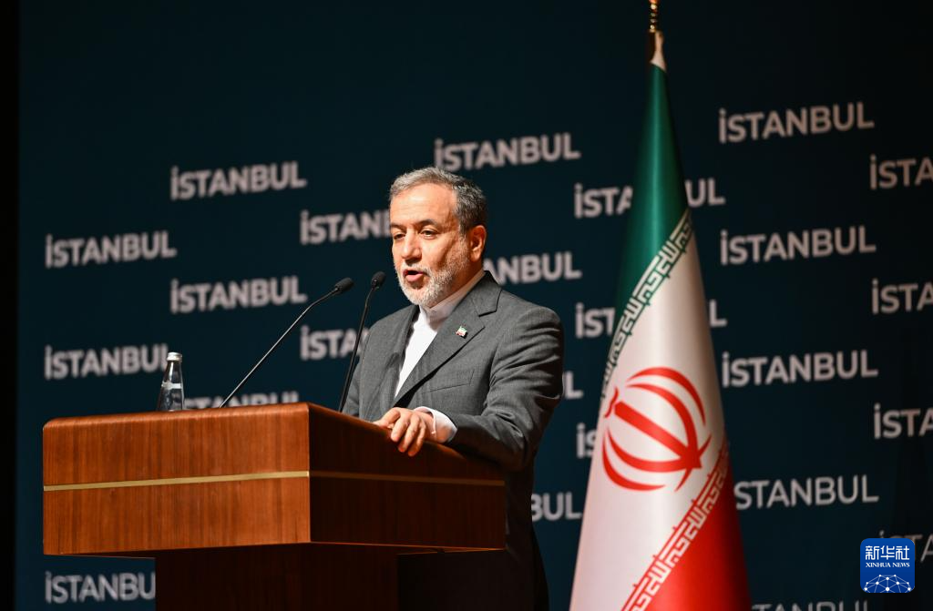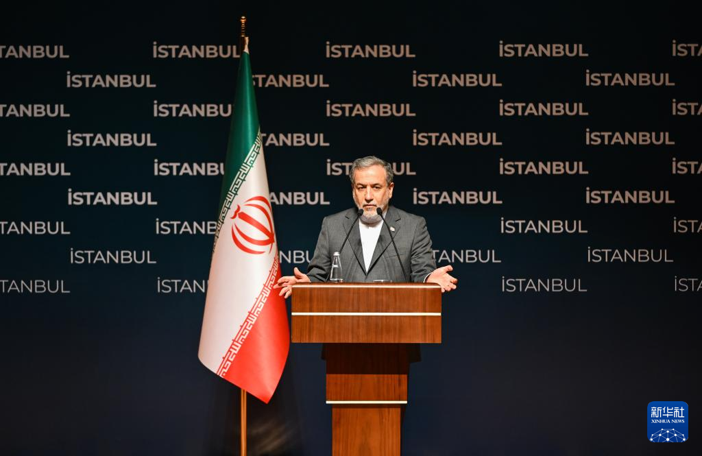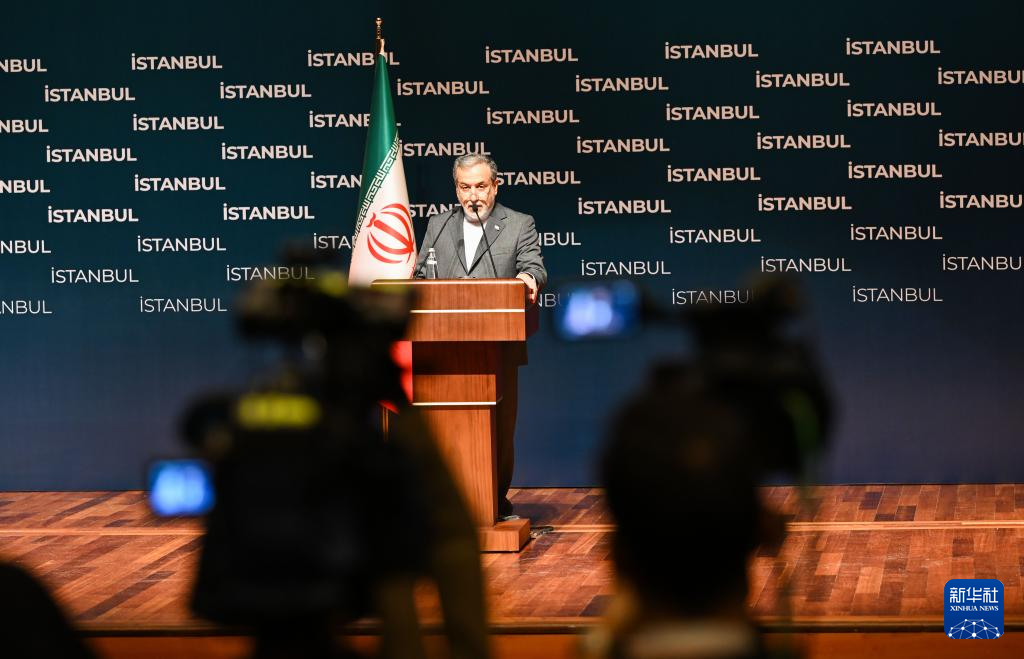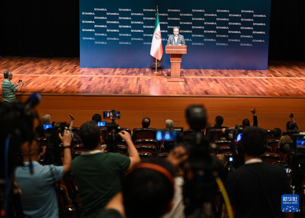 6月22日,伊朗外交部长阿拉格齐在土耳其伊斯坦布尔举行的新闻发布会上发言。