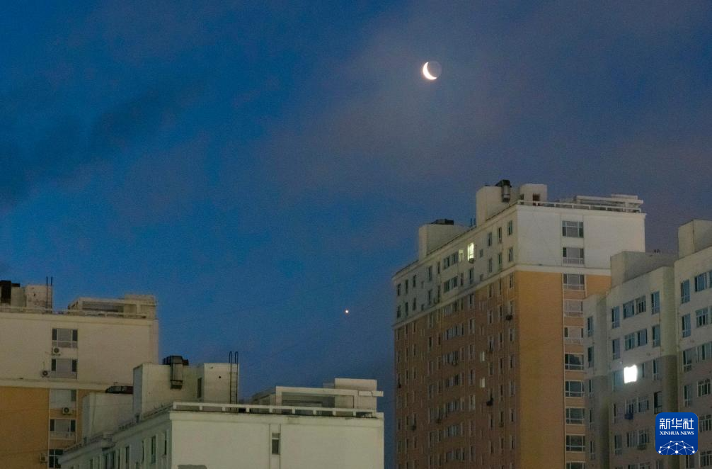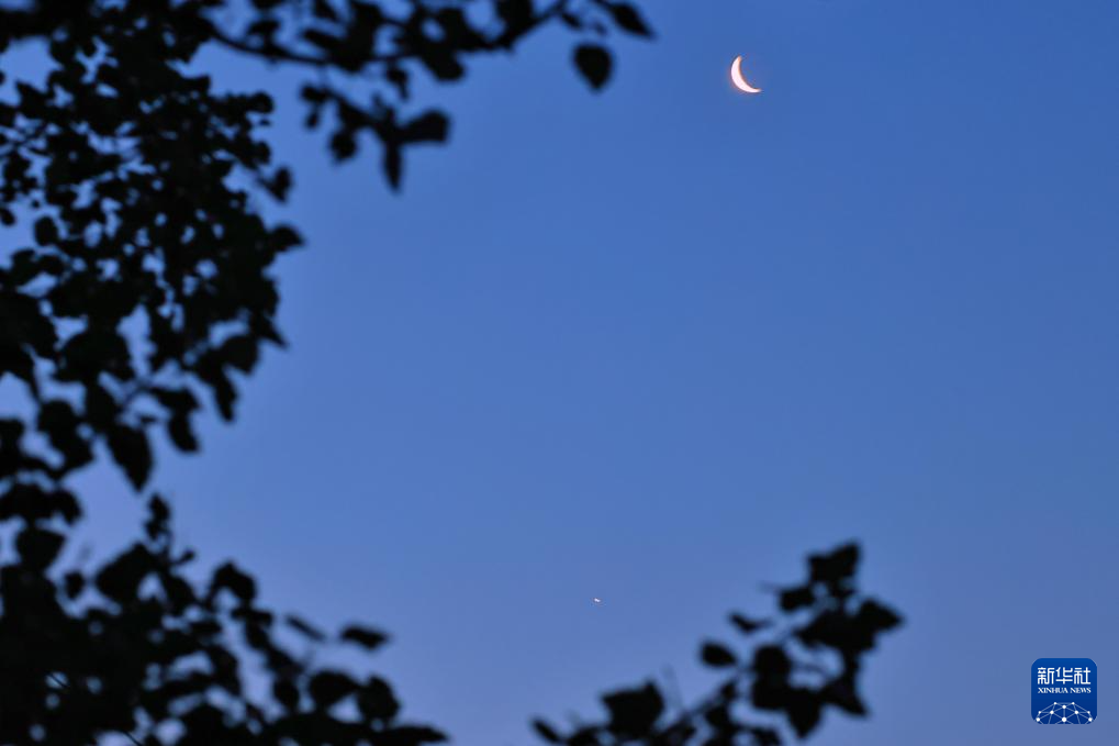 6月22日凌晨在黑龙江省黑河市北安市拍摄的金星伴月。