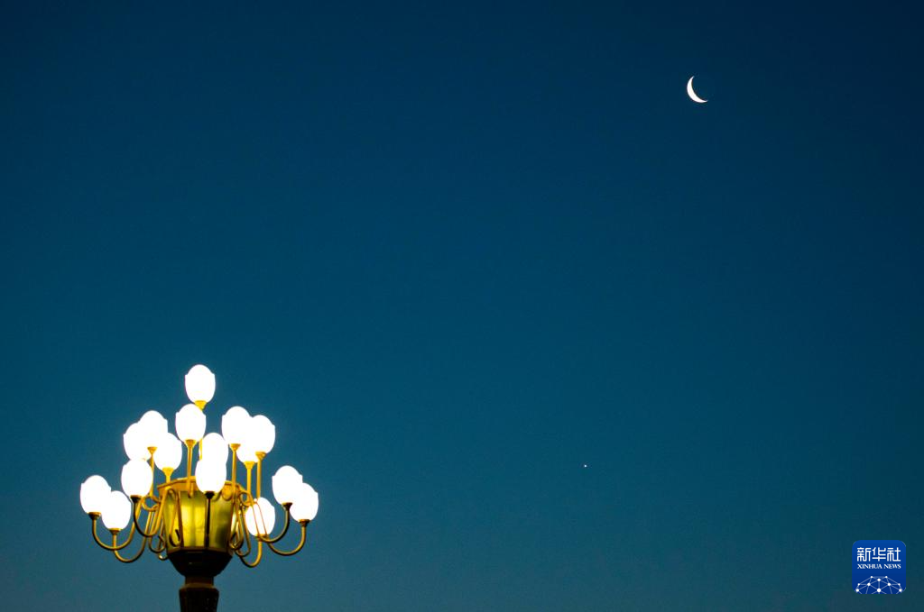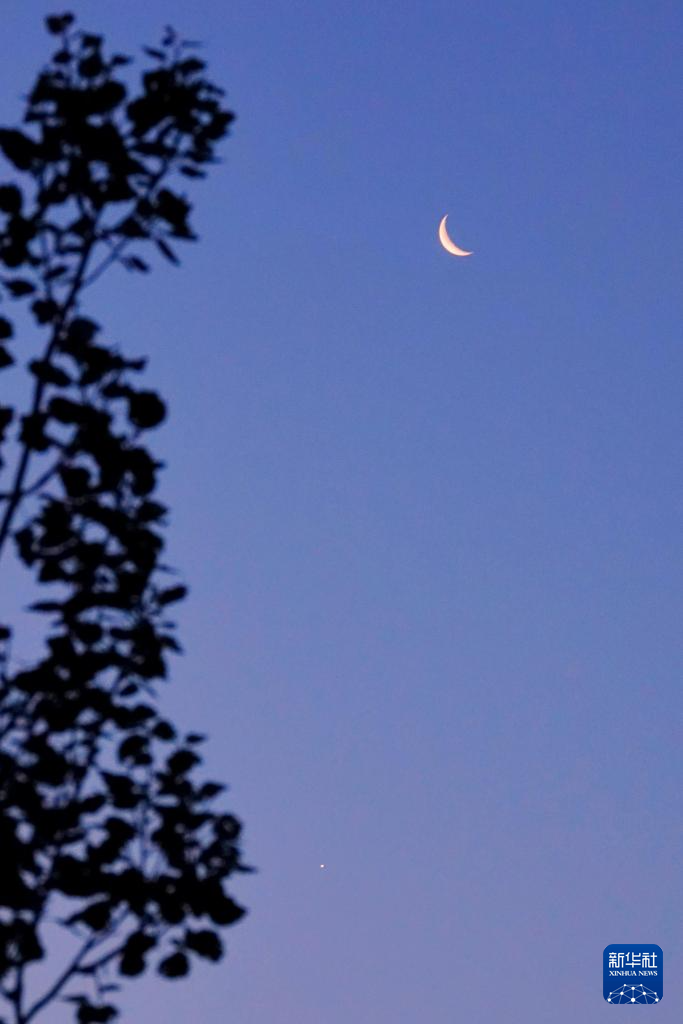 6月22日凌晨,明亮的金星与一钩残月近距离相伴,共同绘就一幅浪漫的天幕画卷。