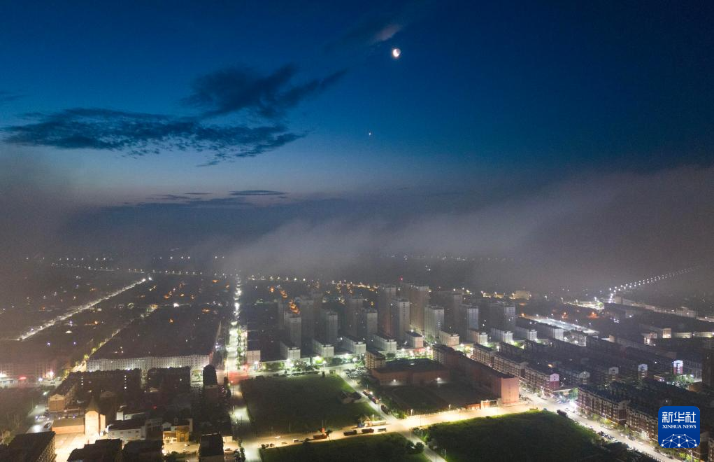 6月22日凌晨在黑龙江省佳木斯市富锦市拍摄的金星伴月(无人机照片)。