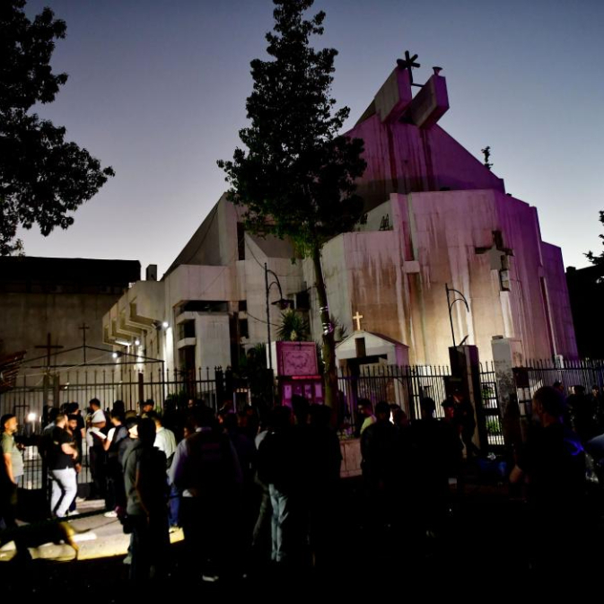6月22日,人们在叙利亚首都大马士革东部发生爆炸的教堂外聚集。