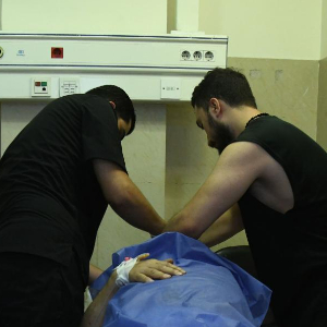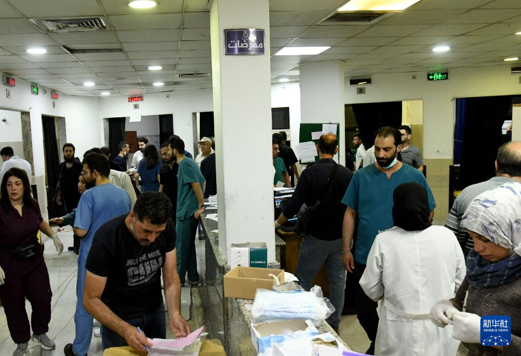 6月22日,在叙利亚首都大马士革,医务人员在救治袭击事件伤者的医院内工作。
