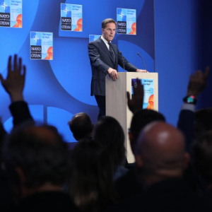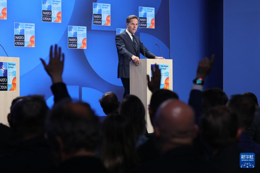 6月23日,在荷兰海牙,北约秘书长吕特在北约峰会前出席新闻发布会。