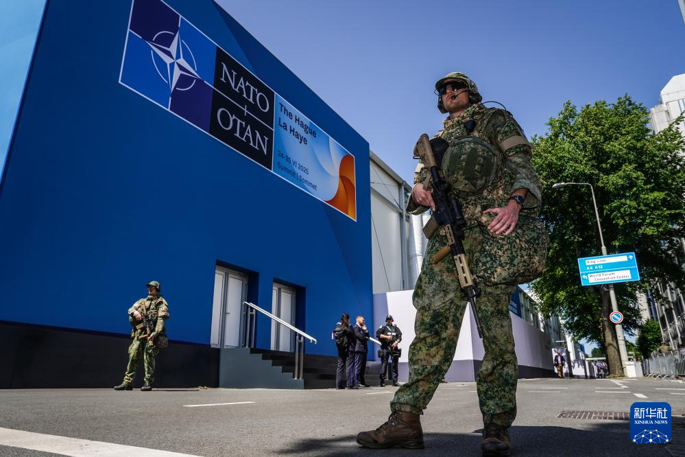 6月23日,在荷兰海牙,安保部队在北约峰会外执勤。