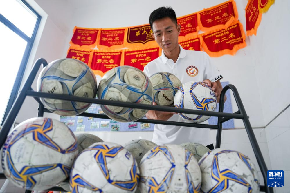 6月22日,卢志勇在校队足球训练课开始前进行准备。
