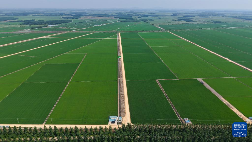 这是6月24日在黑龙江北大荒农业股份有限公司八五六分公司第六管理区高标准农田拍摄的水稻秧苗(无人机照片)。