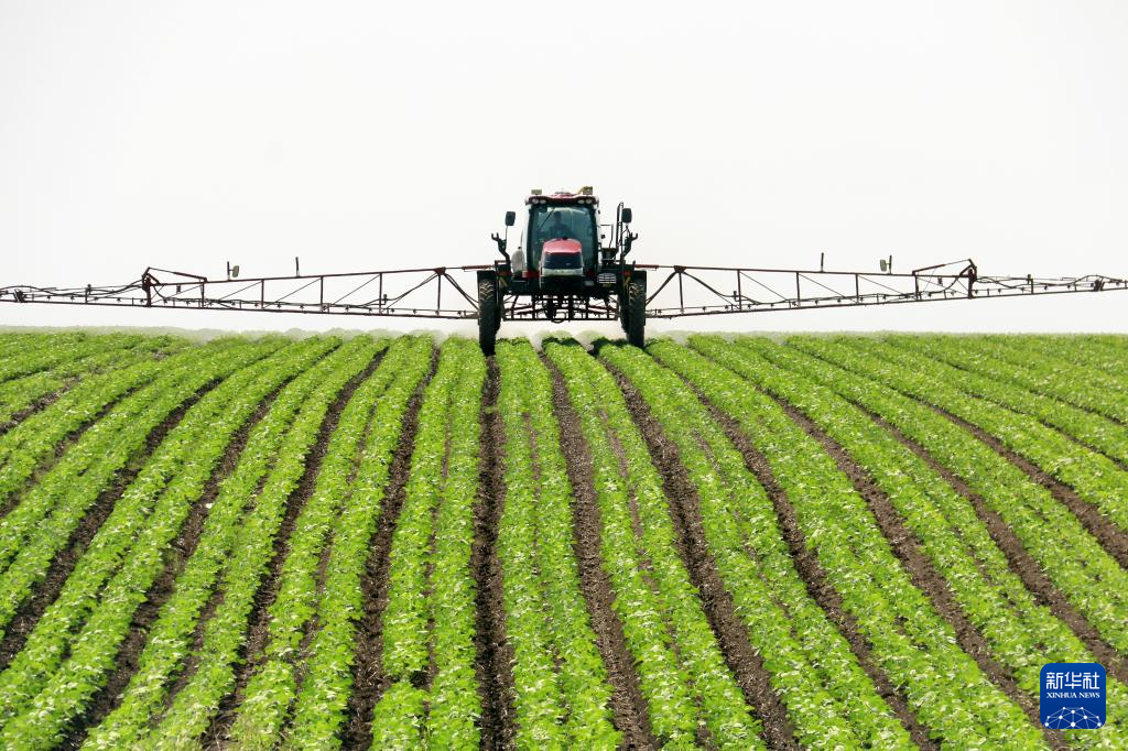 6月23日,在北大荒集团黑龙江格球山农场有限公司第三管理区,种植户驾驶农机进行夏管作业。