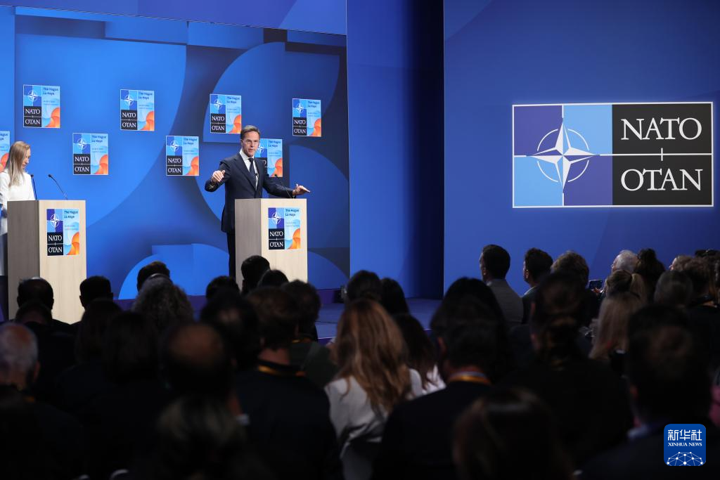 6月25日,在荷兰海牙,北约秘书长吕特在北约峰会期间出席新闻发布会。