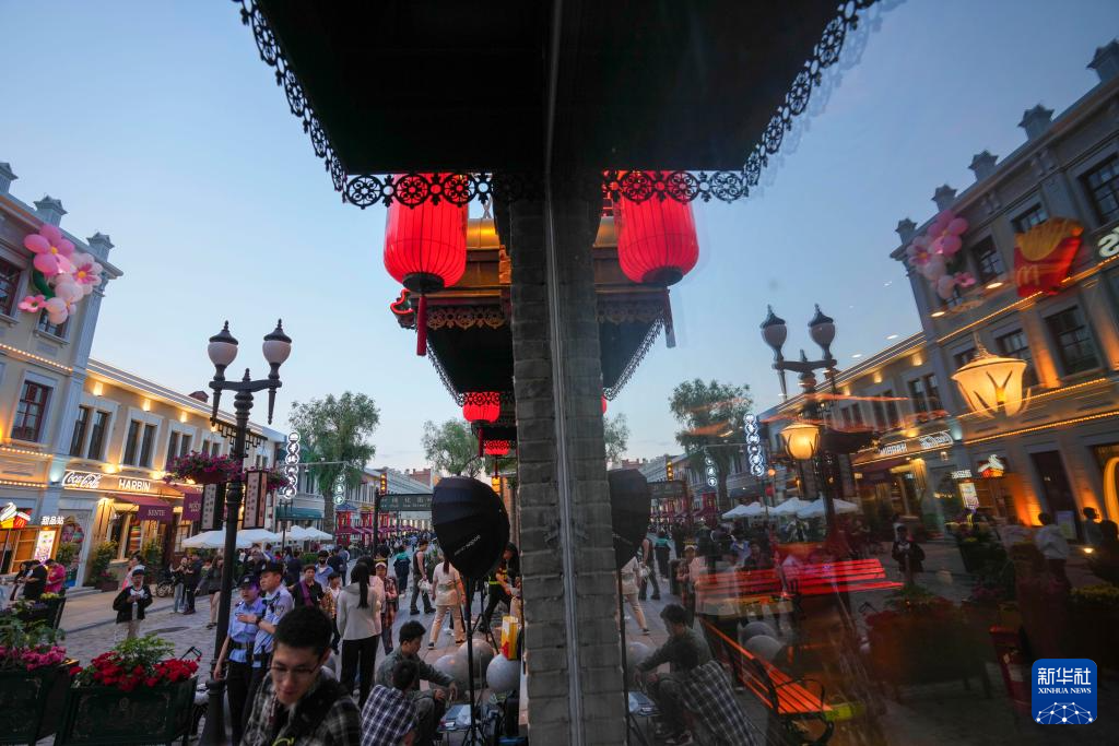 人们在位于哈尔滨市道外区的中华巴洛克历史文化街区游玩(2025年6月7日摄)。