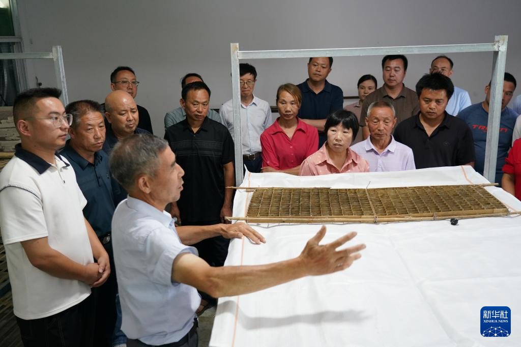 6月23日,在安康市汉阴县涧池镇五坪村,技术人员对多名第一书记和养蚕户进行省力化蚕台养蚕技术培训。