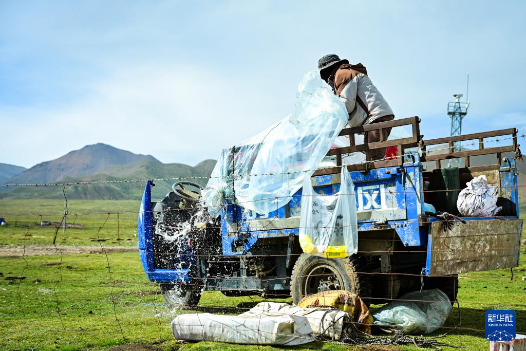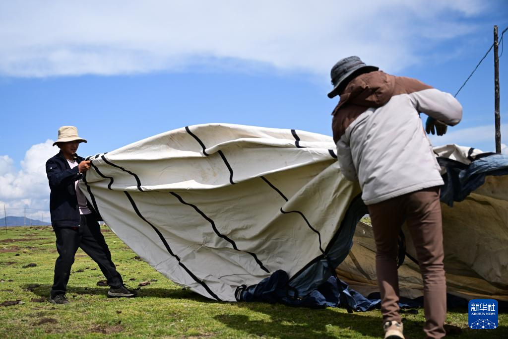6月25日下午,先巴尖措在为搭帐篷做准备。