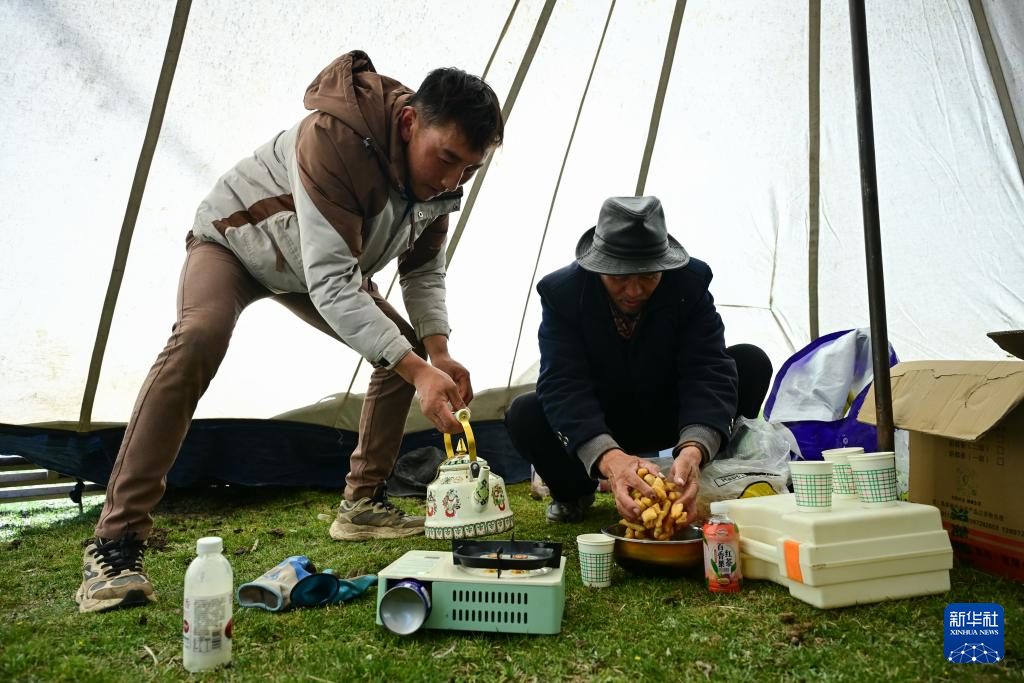 6月25日下午,万卓与先巴尖措在帐篷内准备晚饭。