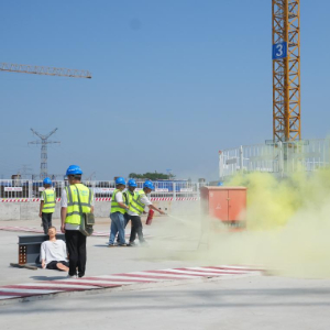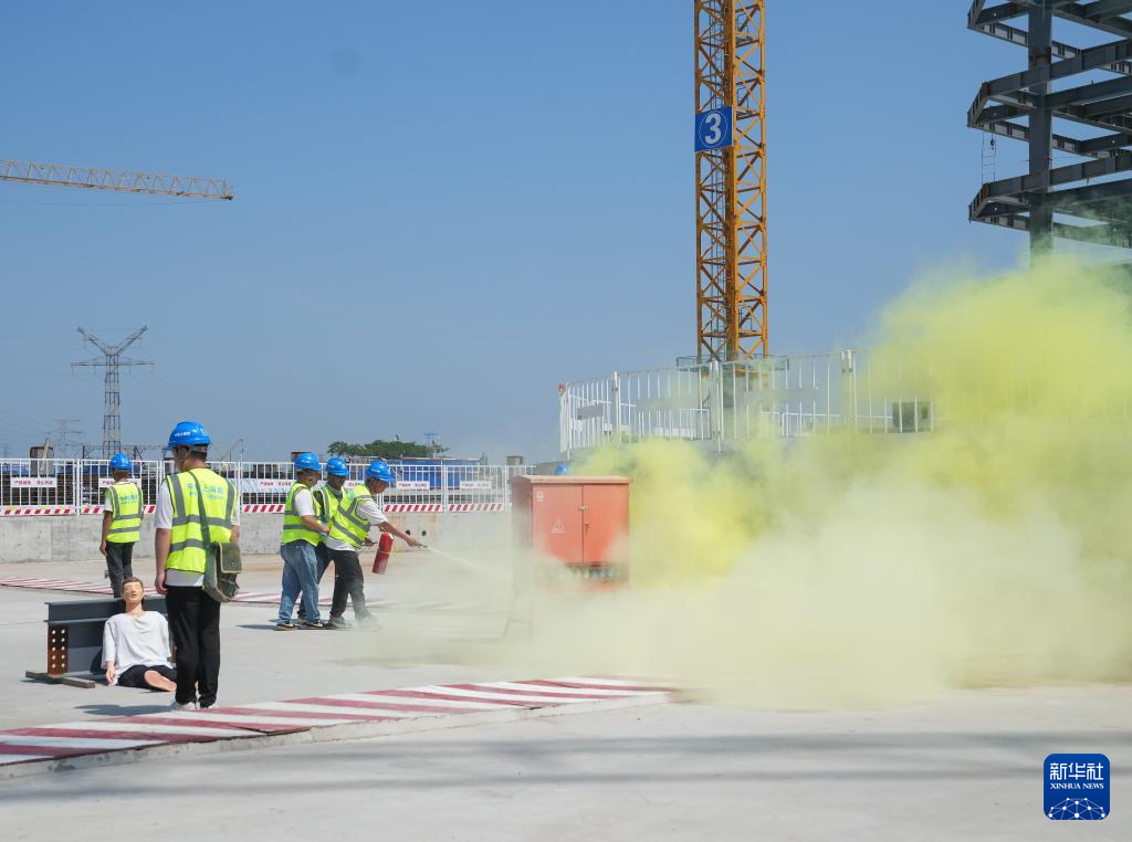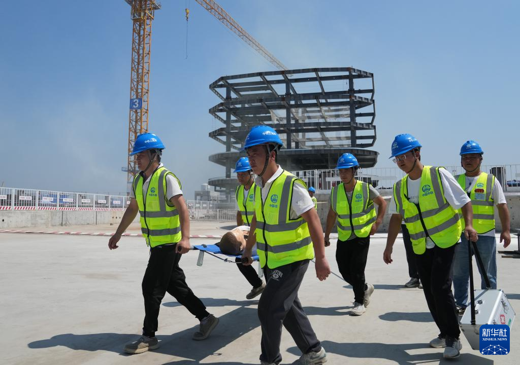 当日,2025年上海市奉贤区建设工程“安全生产月”活动在中铁上海工程局建筑公司的一处项目工地举行。活动现场模拟火灾扑救、人员施救等环节进行了应急救援演练,旨在强化建筑工地安全生产意识,提升突发事件应急处置能力。