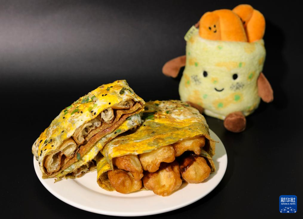 这是在天津拍摄的煎饼馃子和玩偶(6月10日摄)。