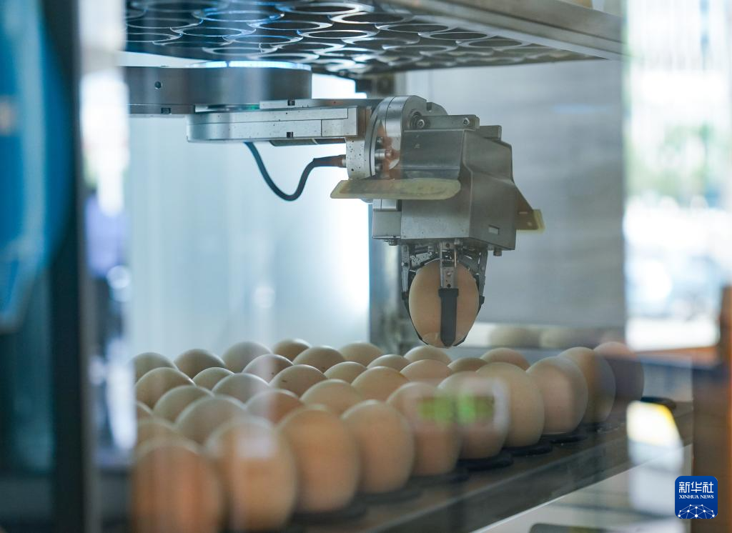 天津一家便利店内的煎饼馃子机器人在制作煎饼馃子(6月11日摄)。