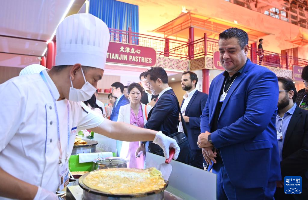 6月24日至26日,2025年夏季达沃斯论坛在天津举行,世界各地的嘉宾汇聚渤海之滨。煎饼馃子,这道天津经典小吃作为当地饮食文化的代表之一,成为达沃斯论坛文化展示中的一项。