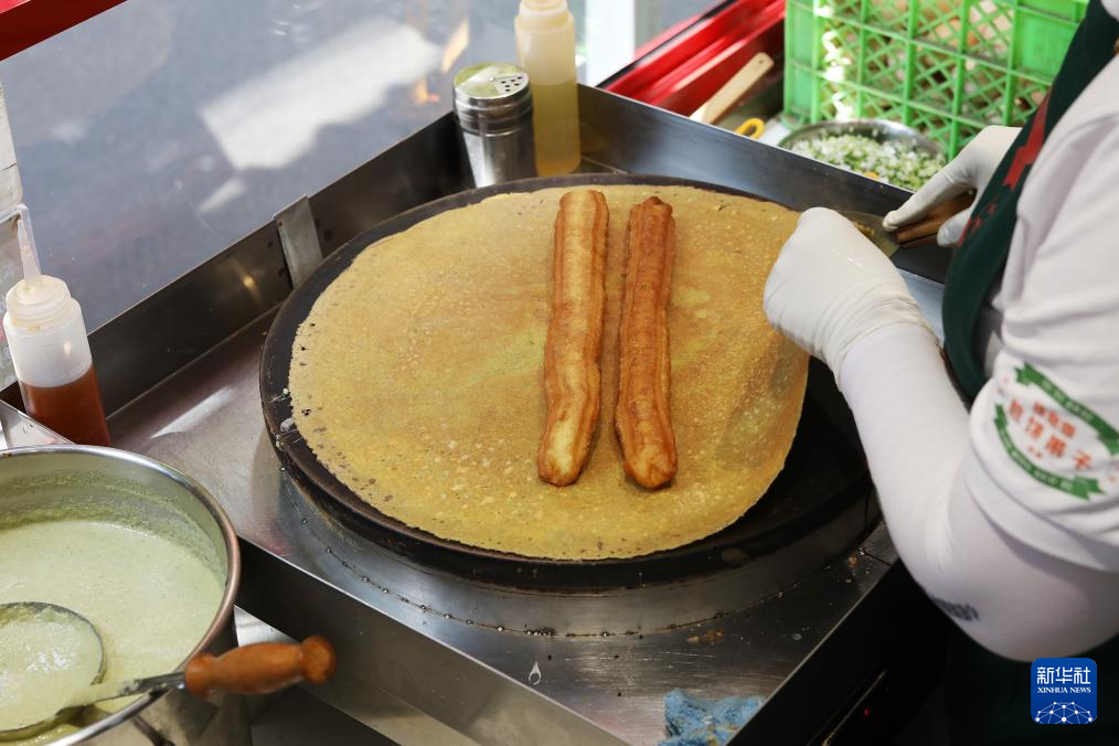 这是在天津拍摄的煎饼馃子(6月10日摄)。