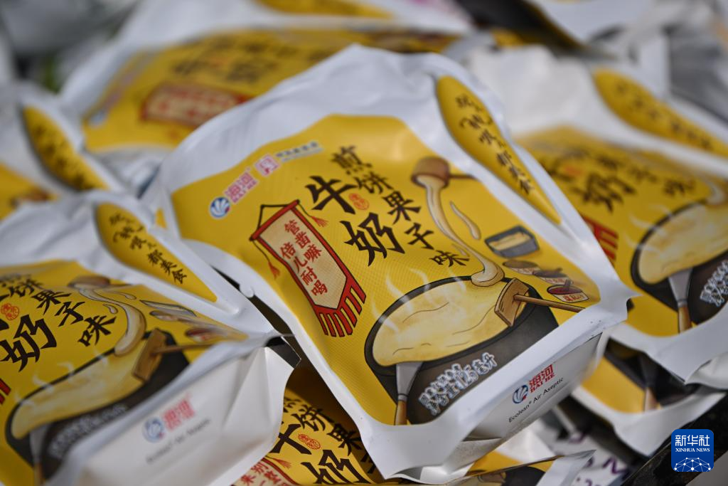 在天津市红桥区西北角特色街区拍摄的煎饼果子味牛奶(5月27日摄)。