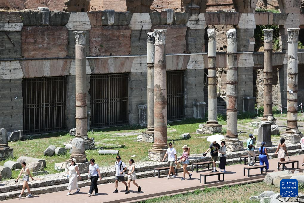 6月27日,在意大利罗马,游客在古罗马广场游览。