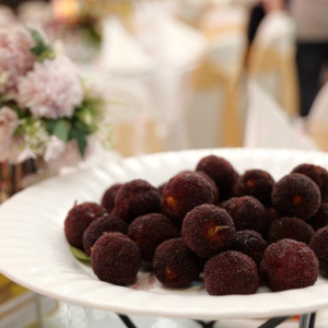 这是6月24日在德国法兰克福一家餐厅拍摄的东魁杨梅。