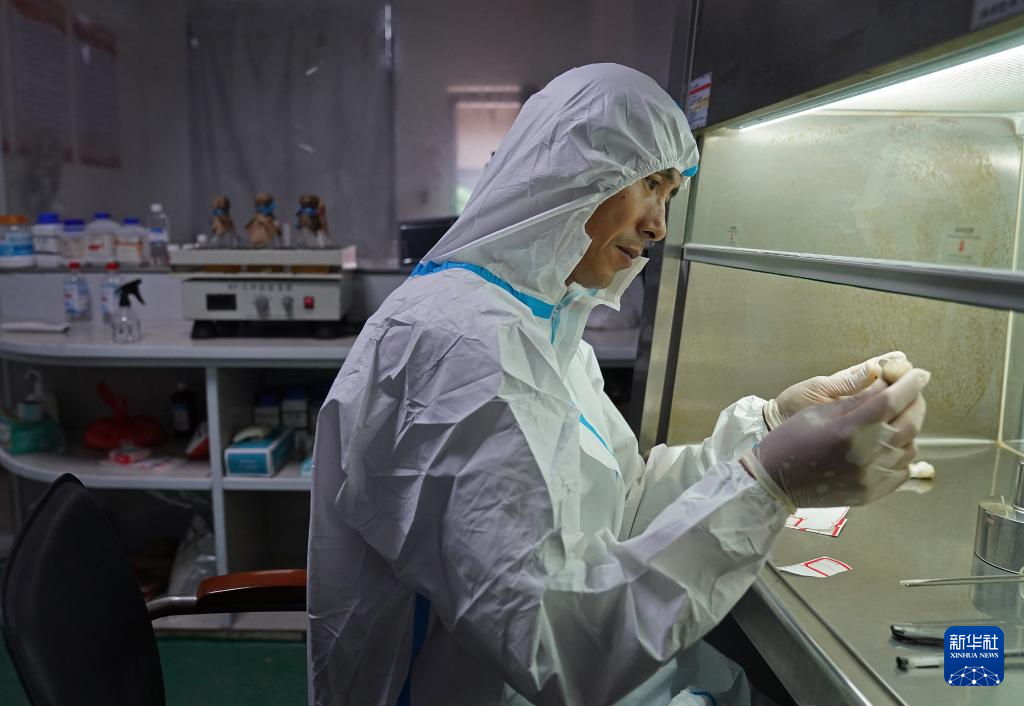 6月26日,在江西省南昌市红谷滩区流湖镇的一家食用菌生产基地,工作人员在培育菌种。