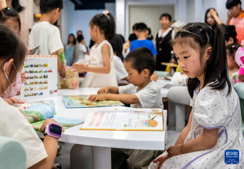 6月28日,在长沙图书馆湘江新区周家湾分馆,小朋友在阅读图书。
