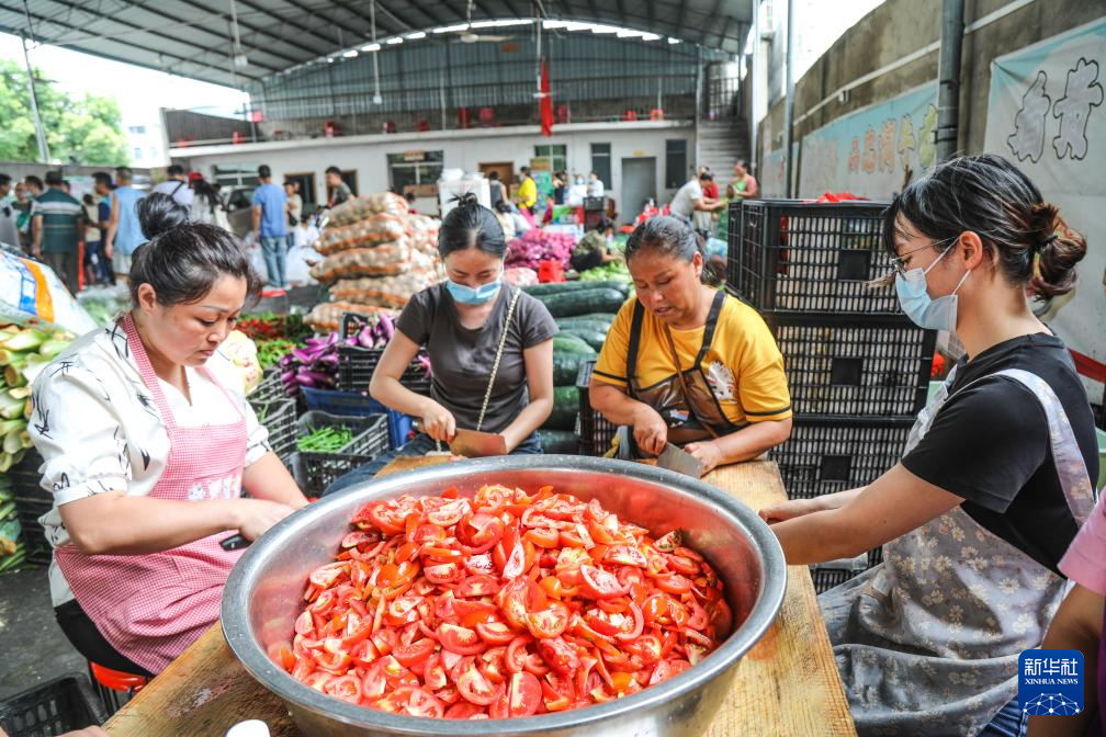 6月26日,村民在贵州省榕江县忠诚镇一处后勤伙食保障点切菜。