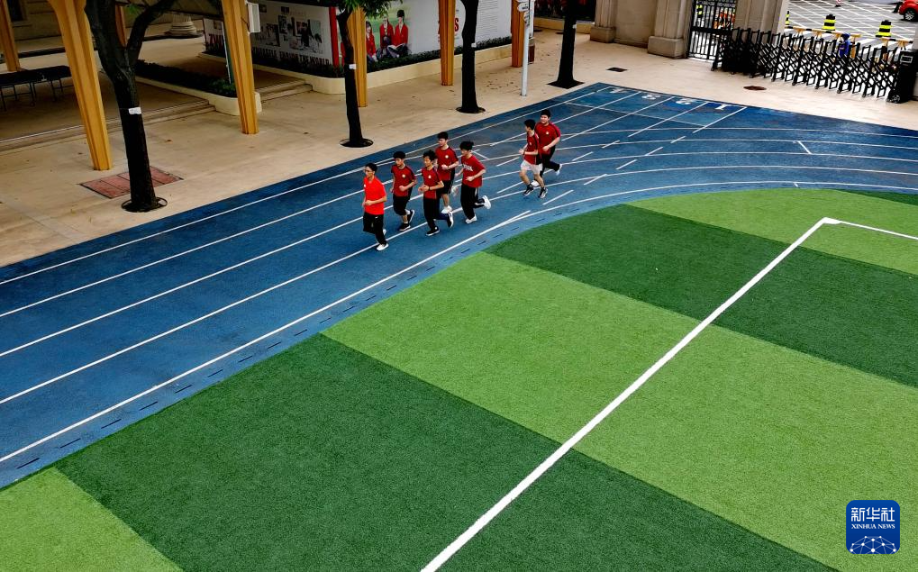 图为6月19日拍摄的广州市中黄港澳子弟学校操场(无人机照片)。