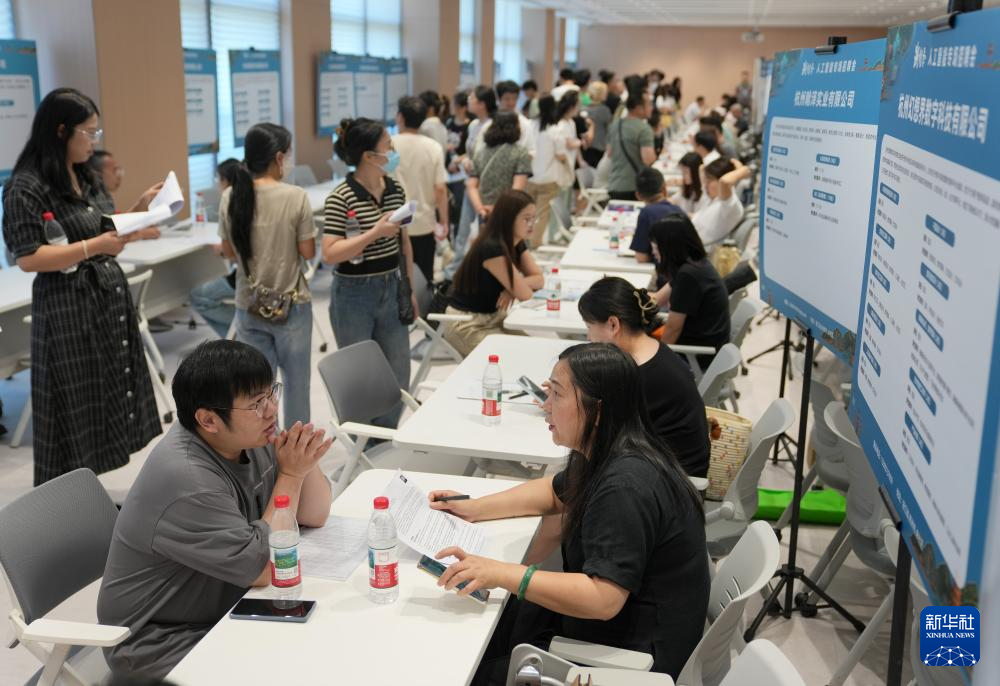 6月28日拍摄的2025年杭州市人工智能专场招聘会现场。
