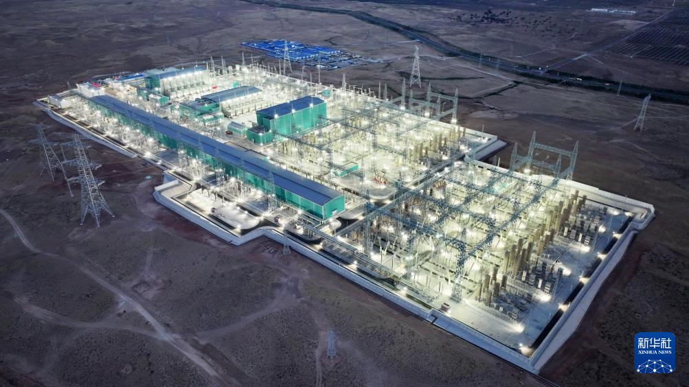 这是6月21日拍摄的“宁电入湘”工程宁夏中卫市中宁换流站夜景(无人机照片)。