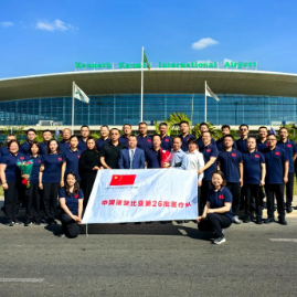 中国援赞比亚第26批医疗队28日顺利抵达赞首都卢萨卡,开启为期一年的医疗援助任务。第26批医疗队由河南省多家医院派遣,共有27名医护人员,涵盖普外、神外、神内、心内、妇产、麻醉、超声、中医骨伤、针灸推拿等专业。