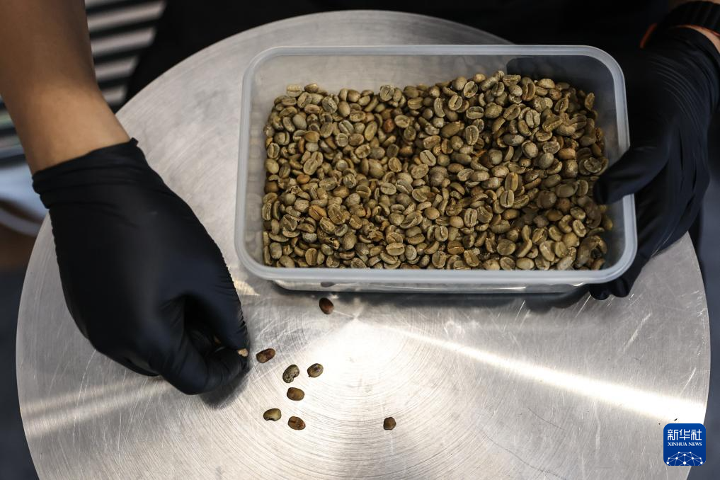 6月18日,刘佳迪在烘焙前把有缺陷的咖啡生豆挑捡出来。