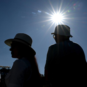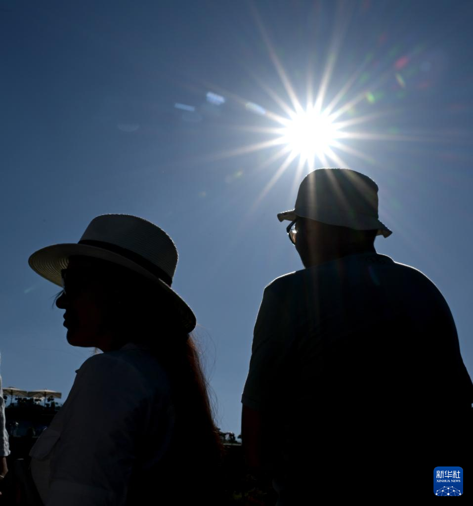 6月30日,在英国伦敦,观众在烈日下观看温布尔登网球公开赛。