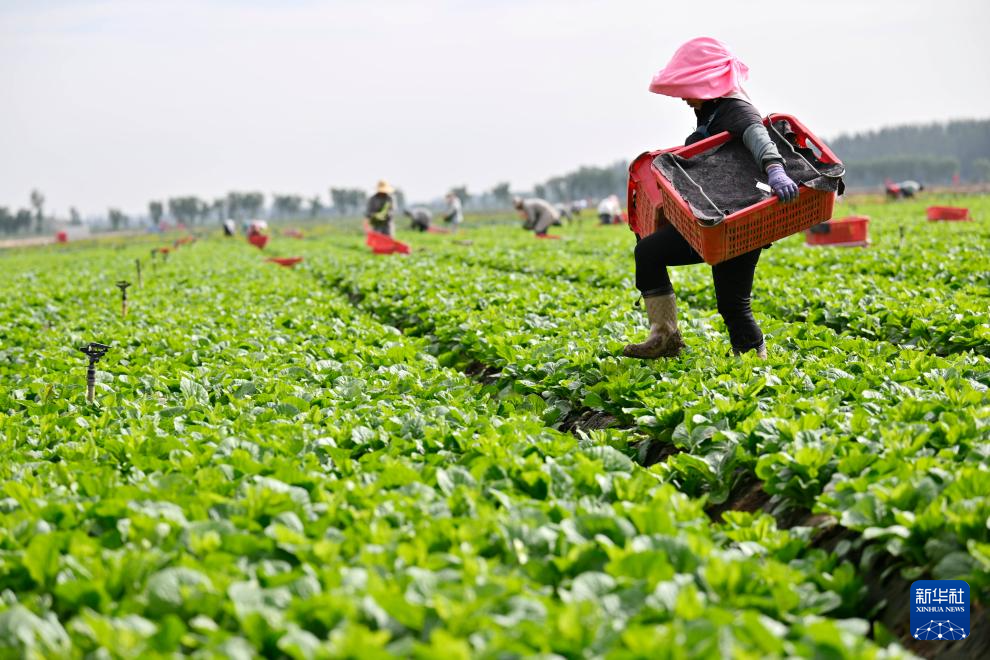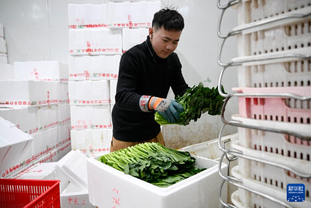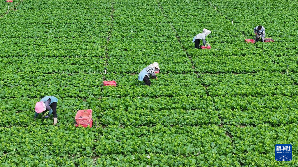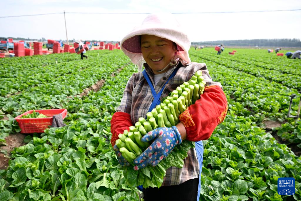 近日,宁夏青铜峡市供港蔬菜迎来丰收季。在位于青铜峡市邵岗镇的供港蔬菜种植基地里,采摘工人忙碌在田间地头,采摘西兰苔、芥蓝、菜心等蔬菜。