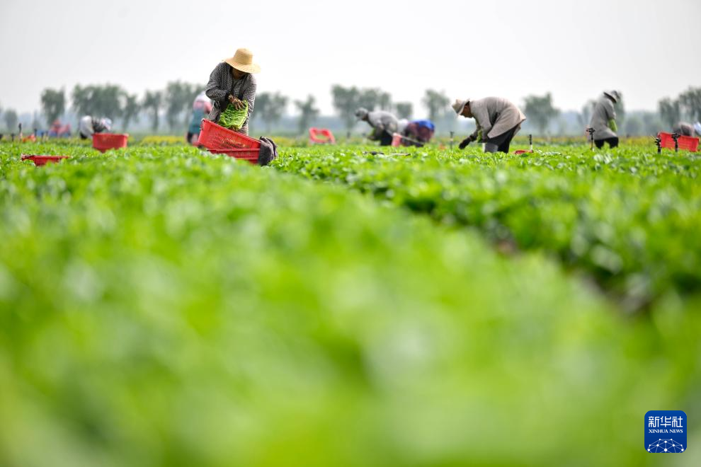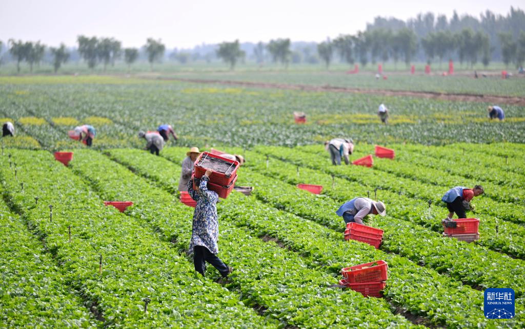 7月1日,工人在位于青铜峡市邵岗镇的益丰农业供港蔬菜基地采摘蔬菜。