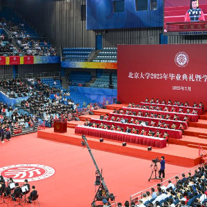 当日,北京大学2025年本科生毕业典礼暨学位授予仪式在北京大学邱德拔体育馆举行。