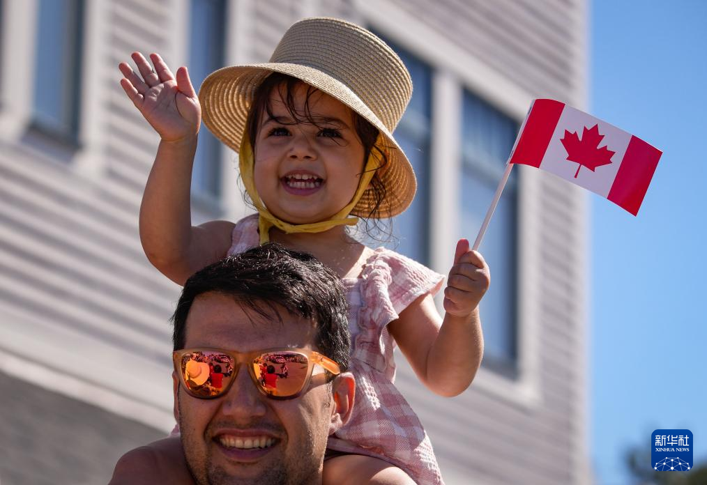 7月1日,在加拿大里士满举行的国庆日游行中,一名小女孩挥动加拿大国旗。