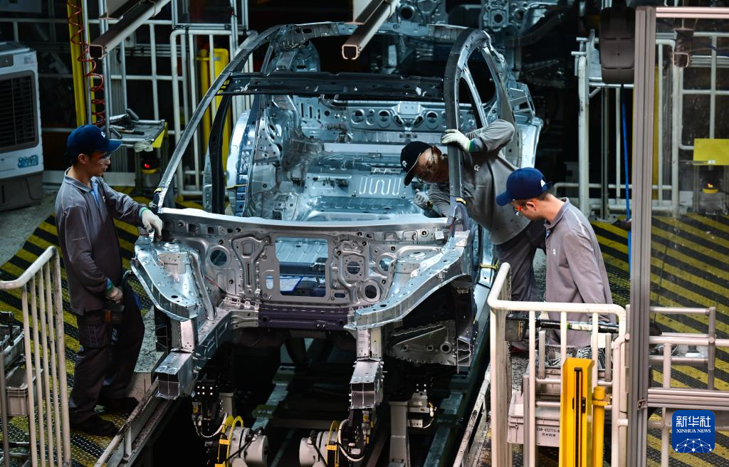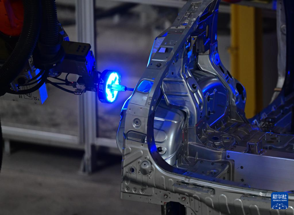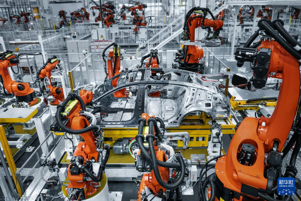 这是位于合肥市肥西县的江淮汽车尊界超级工厂内的自动化焊接生产线,该工厂是江淮汽车携手华为专门为尊界品牌打造的工厂。