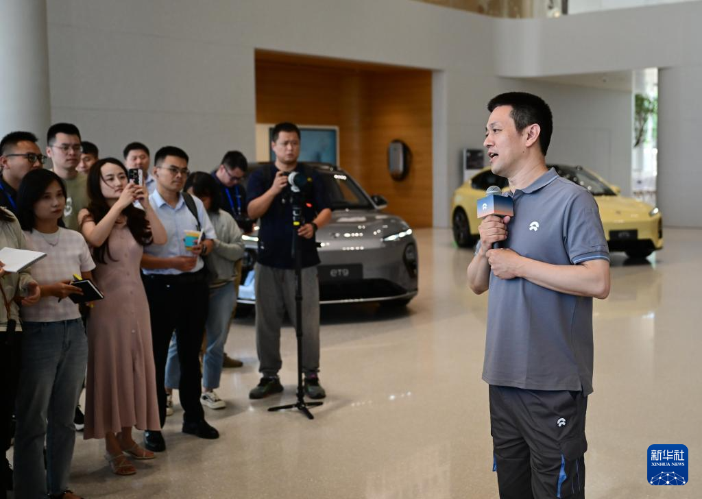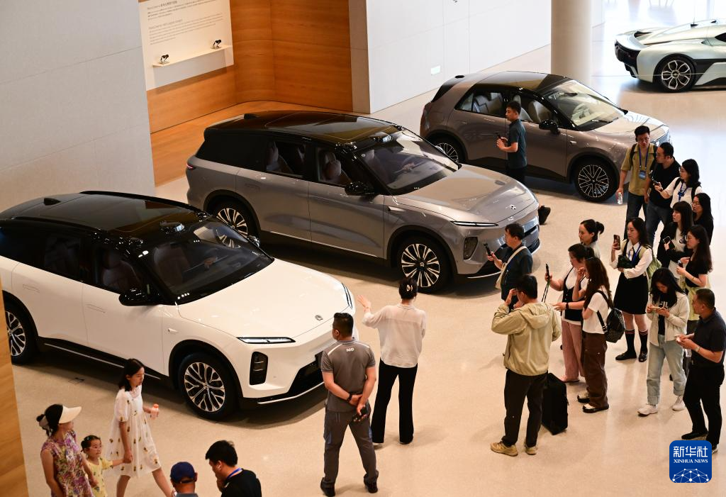 7月1日,在合肥市新桥智能电动汽车产业园蔚来第二工厂,媒体记者参观几款新能源汽车。
