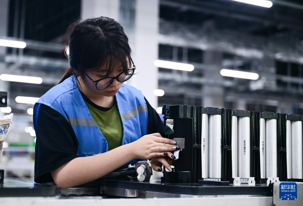 6月30日在华霆(合肥)动力技术有限公司拍摄的电池包生产线。该公司主要设计、制造和销售电动汽车的定制电池系统,为全球新能源车企提供电池包产品。