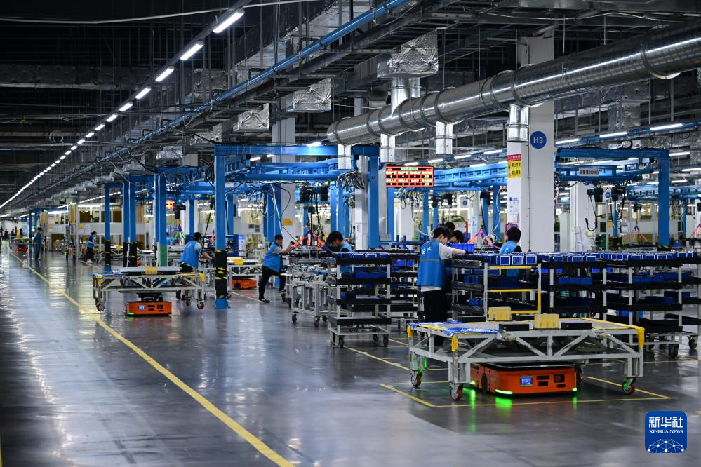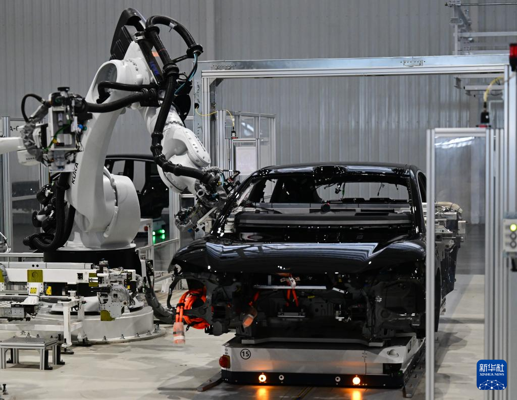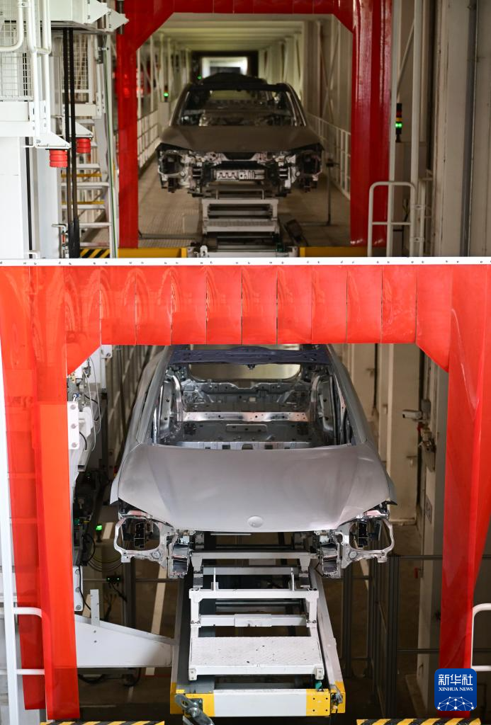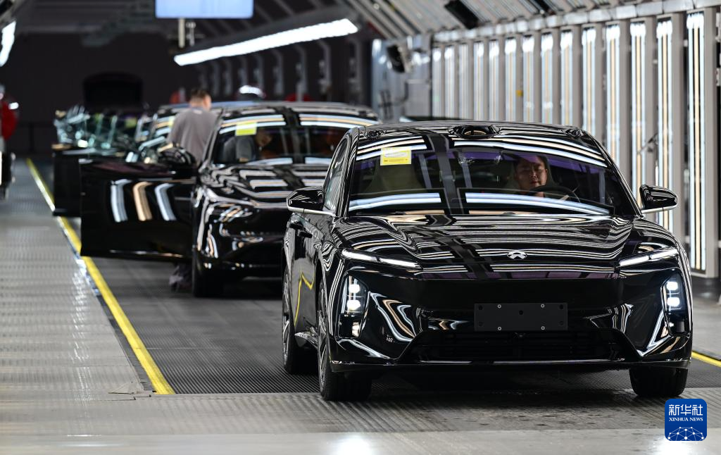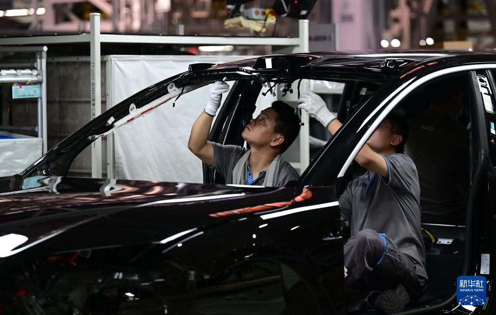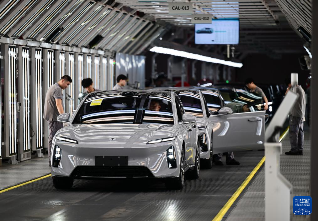 7月1日在合肥市新桥智能电动汽车产业园蔚来第二工厂拍摄的新能源汽车生产线。