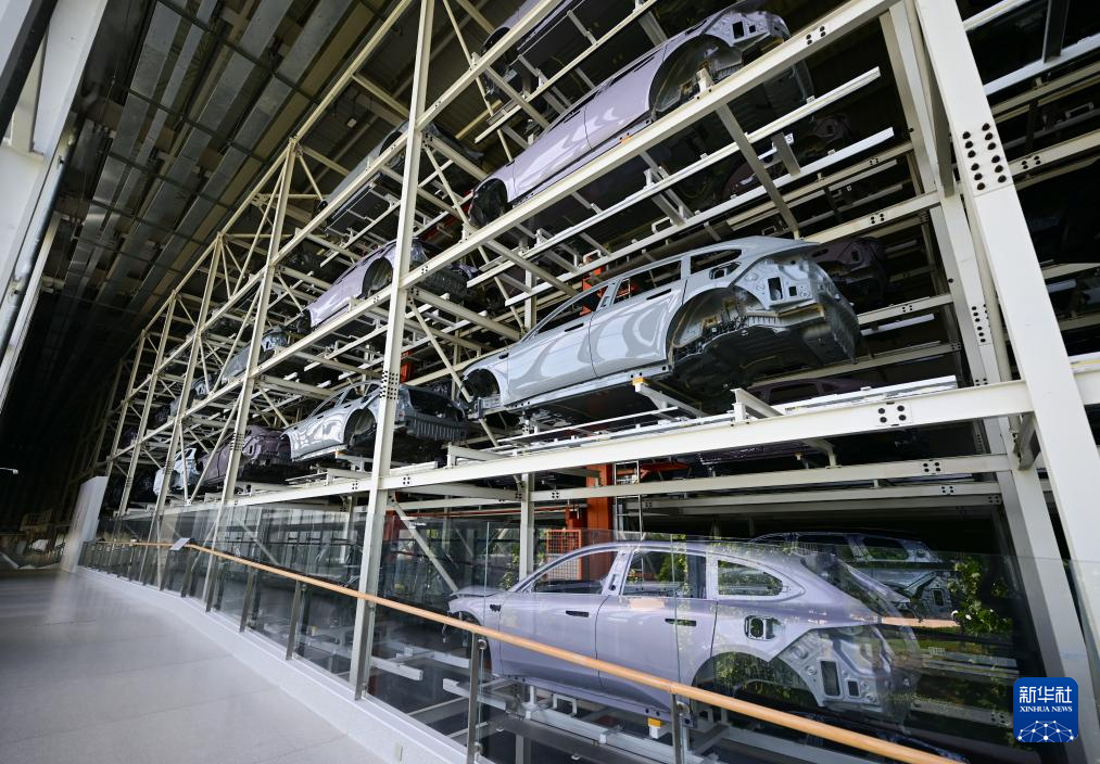7月1日在合肥市新桥智能电动汽车产业园蔚来第二工厂拍摄的“魔方”车辆存取平台。