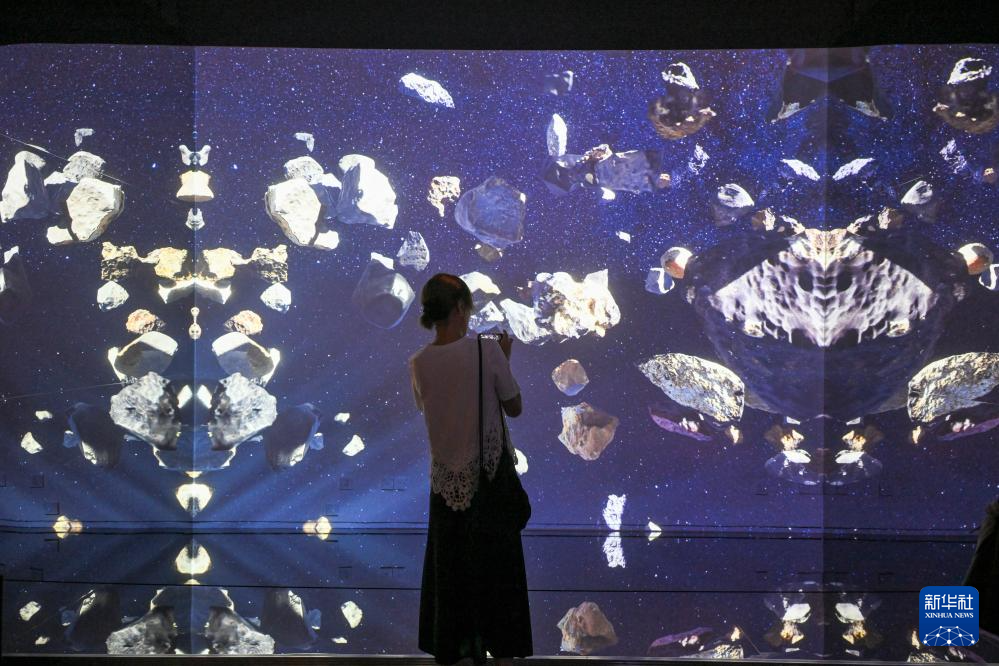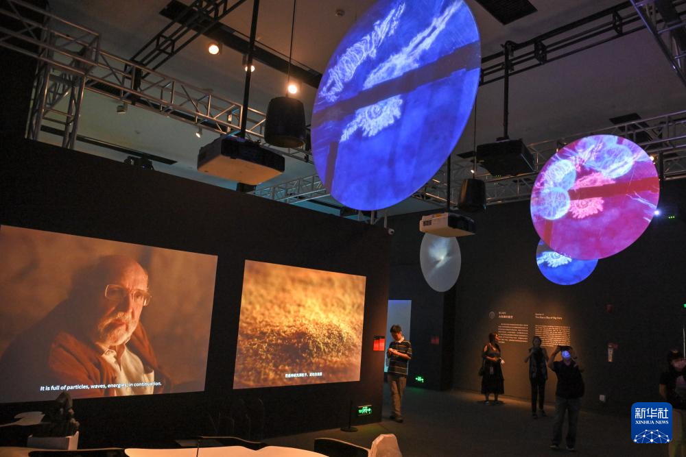 7月2日,观众参观宇宙碰撞交互装置作品。