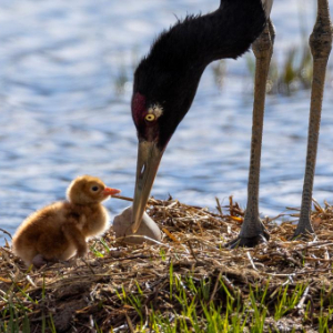 这是在西藏那曲市申扎县拍摄的黑颈鹤和前一天刚出壳的雏鸟(6月5日摄)。