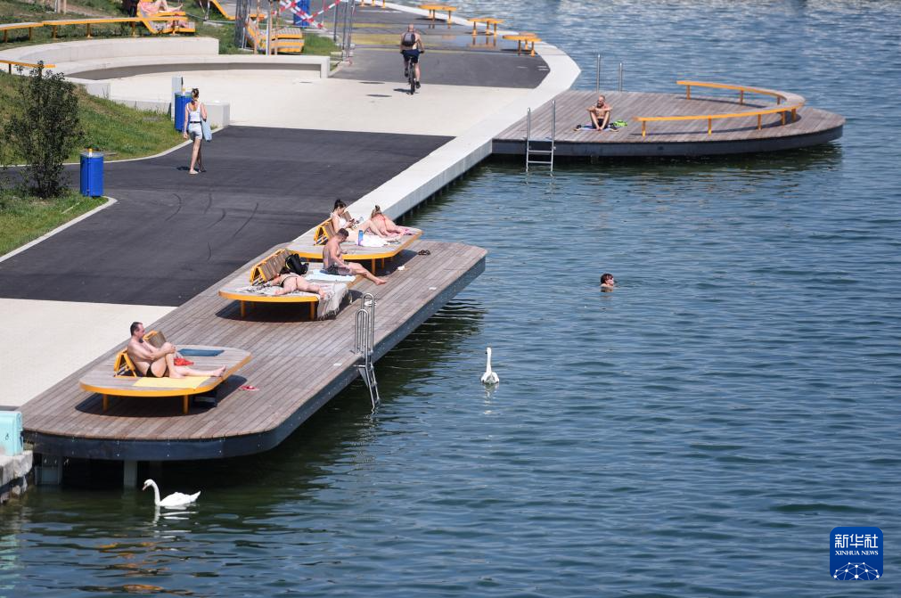 7月3日,在奥地利维也纳,人们在多瑙河畔休憩。