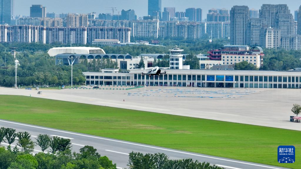 7月2日,一架电动垂直起降飞行器(eVTOL)在合肥骆岗公园演示飞行(无人机照片)。