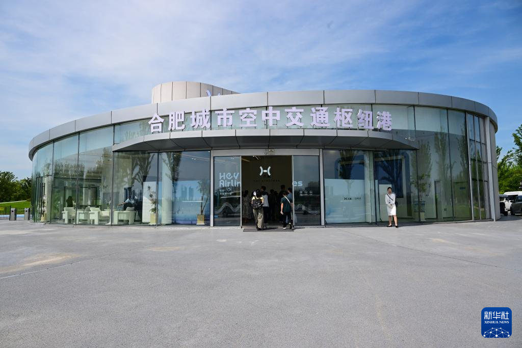 7月2日,一架电动垂直起降飞行器(eVTOL)停放在合肥城市空中交通枢纽港。