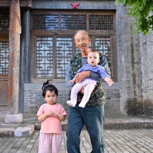 村民在山西省吕梁市兴县蔡家崖村留影(6月30日摄)。